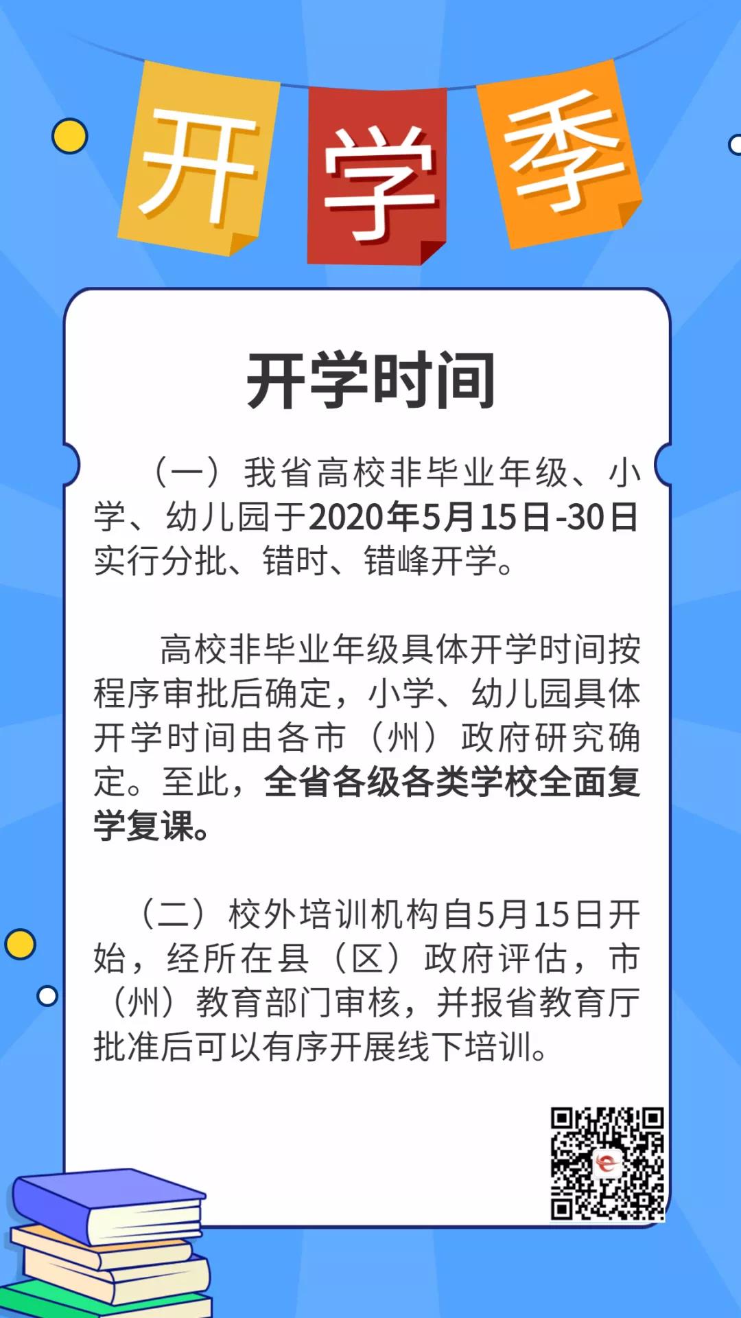 为深入贯彻落实习近平总书记关于做好常态化疫情防控、加快推进复工复产和恢复生产生活秩序及复学复课的重要指示精神,按照省委省政府决策部署,现就做好高校非毕业年级、小学及幼儿园开学工作通知如下: 1