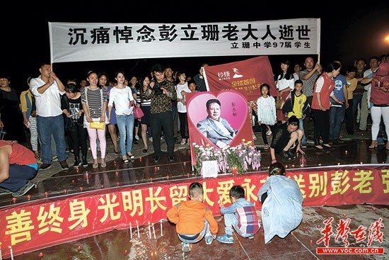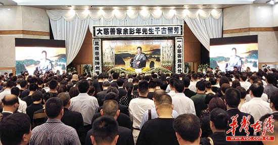 中国裸捐第一人余彭年追悼会 60亿资产“裸捐”5月7日晚,娄底市民自发来到孙水公园参加悼念活动。 邹雄华 摄 余彭年,本名彭立珊,出生于涟源杨市镇,知名港商、著名慈善家。在家乡,余彭年捐建过涟源立珊中学、长沙五一广场地道工程、长沙火车站彩灯喷泉、彭立珊救护中心,当然,还有立珊公交专线。5月2日,余彭年辞世,享年93岁。 ■记者 戴鹏 于振宇 深圳报道 华声在线-三湘都市报讯 5月7日上午,深圳,太阳突隐,阴云密布,大雨骤起。 “这是为彭老送行。”殡仪馆门前,来自湖南益阳的追悼者刘卓,看着天上落下的雨水,流下了眼泪。 此时,湘籍慈善家、香港知名企业家余彭年追悼会正在深圳殡仪馆大礼堂举行。 三湘都市报记者在深圳,与来自全国各地的受助者一起深深缅怀、感恩余彭年先生。本报敬献花圈并撰写挽联,缅怀逝者。 追悼会后,余彭年长孙彭志兵宣布:将严格执行老人遗嘱,“裸捐”其全部资产,用作慈善。 现场 生前资产全“裸捐” 胡润感慨:了不起 7日上午,深圳市殡仪馆大礼堂内外,400余花圈挽联,800余人现场吊唁。 追悼会后,余彭年长孙彭志兵召开媒体见面会。 他表示,余彭年生前资产初步估计为60亿至80亿(注:港币),具体数据仍在统计。根据余彭年遗愿,家属均不继承遗产,其所有资产将全部用于慈善事业。 余彭年生前已将所有资产委托香港瑞士信贷银行管理, 成立“余彭年信托”,彭志兵担任资产监护人。老人辞世后,所有资产以及此后产生的利润,都不得由家属支配。目前,余彭年信托主要的慈善项目是“彭年光明行动”和支持全球教育发展。而光明行动是余彭年“最满意的一件事”。2004年起,他已连续十年出资,为全国贫困白内障患者做了30万例手术。 余彭年生前说,要继续加大对湖南的慈善项目投入。余彭年信托委员会委员徐滨表示, “余老曾告诉我,自己对家乡湖南的感情,是任何地方都无法替代的,重点要放在湖南。” “胡润百富”创办者——英国人胡润也现场悼念,忆及初见余彭年的情景,他说:“当时余先生说要‘裸捐’,我不相信。但今天,他真的做到了,他是一位了不起的慈善家。” 湖南省委统战部副部长陈潇出席吊唁,他亦是余彭年先生善举的受益者。陈潇在湖南大学求学时,余彭年捐赠的立珊专线记录了陈潇的青春岁月。 “老先生是湖南人的骄傲,我们失去了一位大爱大德的慈祥长者。他‘裸捐’做慈善,大爱之路,敢为人先。”陈潇说。 悼念 百余娄底籍老乡送行 “他是一面旗帜” 5月4日,余彭年家人发布讣告,7日将在深圳市殡仪馆举行余彭年的追悼会。此后,又传出消息,余彭年将在深圳大鹏湾下葬。 连日来,在深圳、东莞、惠州和广州的湖南娄底籍同乡的微信中,悄然开始了一场赶赴追悼会的“接龙报名”。 活动发起人吴立新说,因余彭年是湖南娄底老乡,他们想在6日上午9点整,在彭老追悼会前一天,召集娄底老乡在深圳市殡仪馆,用家乡的风俗为老人送行。 “锣鼓响起,鞭子放起。余老虽然不能落叶归根,但在他乡,我们依然用家乡的风俗,为这位德高望重的老人送行。”吴立新说。 倡议一发出,娄底(深圳)同乡会、冷水江(深圳)商会等多个在深圳的娄底老乡组织,纷纷响应,仅仅一天,103名湖南娄底籍老乡报名参加。 因布置场地和公共秩序等原因,6日上午的这次悼念活动,被迫临时取消。但7日上午的追悼会上,这些老乡仍自发组织前往殡仪馆吊唁。 肖力在东莞经营一家物业公司,老家是与余彭年老人同地——湖南涟源市杨市镇。他早早地推掉了这两天所有的活动和工作安排,早上6点起床,驾车赶往深圳参加追悼会。他说:“在东莞打拼十余年,我都是靠余彭年的励志故事坚定信念,渡过难关,他在我们心中就是一面旗帜。6日的活动虽然取消了,但不管多远,不管多忙,我都应该来送他最后一程。” 网友缅怀 永远的彭立珊,永远的“立珊专线” 娄底眼科医院发微博:5月4日晚,医院一楼大厅,全体医护人员、立珊光明行动受益者、市民自发参与缅怀中国首善余彭年(彭立珊)老先生活动。该医院为缅怀余彭年延续善行,将免费医治300名白内障患者。 云朵朵123456:从长沙城东火车站一路向西,跨越湘江,瞭望橘子洲,绕岳麓山穿过湖大、湖师大,停于中南大学。永远的彭立珊,永远的“立珊专线”。 诗欣:读书时候就知道彭立珊先生的名字了,他的慈善深入人心,感恩家乡有这样一位慈善家,祝老人一路好走。 娄底连线 上千名群众自发组织悼念彭老 5月7日晚,湖南娄底,上千市民自发聚集在孙水公园,手捧鲜花、点亮蜡烛,以诗歌、祭文、歌曲等沉痛悼念余彭年先生。 19点,夕阳的最后一丝余晖落下,络绎不绝的市民纷纷来到孙水公园,将各自准备的蜡烛组成心型,围成一个大大的圆圈后低头默哀。彭立珊的遗像在烛光中渐渐清晰。当娄底市慈善志愿者服务队《祝福》的歌声响起时,人群中已有人在哽咽。 “虽然我们未曾谋面,但彭立珊为家乡做好事、办实事的事迹我早有耳闻。立珊先生真的很伟大!”市民谢女士动情地对记者说。■记者 谢能武 受助者 “没有他,哪有现在的我” 追悼会上,彭格抱着不满3岁的女儿嚎啕大哭。女儿手中捏着白菊,彭格哭着给女儿讲老人的故事,“我希望孩子能从小学会感恩,学会帮助他人”。 彭格,是余彭年在娄底资助教育事业的受益者。1999年从涟源立珊中学毕业后,她来深圳打拼,现在是一名瑜伽