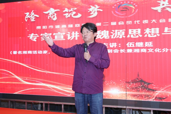 5月29日,湖南在贵州首家县级品牌商会——贵阳市湖南隆回商会商会二届一次会员代表大会暨招商引资推介会隆重召开,中国商业文化研究会湘商文化分会会长、湘商文化投资公司董事长伍继延会长应邀出席并做主旨演讲。肖升建连任会长,伍继延等被聘请为商会顾问。新一届商会领导集体表示将不忘初心,团结奉献、勇于担当、开拓创新,把商会打造成为在湘黔两省都具有一定影响力的品牌商会。伍继延在演讲中表示,已多次参加商会活动并宣讲魏源思想。魏源先生是睁眼看世界第一人,是中国改革开放的第一个设计师,希望广大湘商学习弘扬魏源思想精髓,加强商会和商业文化建设,促进自身企业发展,继续成为湘商的领跑者! 伍继延会长开宗明义地说:在坐的诸位可能无人不晓魏源先生的大名,也多多少少知道他的巨著《海国图志》,但是说起魏源先生的思想,恐怕没有几个人能够说的清楚,更不用说魏源思想在当代对隆回商人和商会发展的作用。 我从小就知道魏源,是因为我父亲是新化人,总告诉我解放前的新化后来被分开了,其中一部分划到了隆回县;上学后老师介绍家乡的先贤,我开始记住了魏源这个名字;直到2007年首届湘商大会召开前,我负责《湘商宣言》的起草,才朦朦胧胧地翻阅了关于魏源先生的相关资料。 2017年4月23日,由浙江省湖南商会和浙江省邵阳商会联合主办的“魏源雕像落成典礼暨纪念魏源诞辰223周年纪念会”在杭州隆重举行,我应邀主持“魏源诞辰223周年纪念会”。从此以后,每年魏源的生日就成了浙江邵阳商会年会的日子;以家乡乡贤生日作为商会年会日,浙江邵阳商会开了先河,值得各地湖南商会学习。 2019年4月21日下午,由浙江省衡阳商会和浙江省邵阳商会联合举办的“衡邵一家亲湘浙共筑梦”年会论坛在杭州人民大会堂隆重举行,我应邀以“魏源思想与邵商精神”为题作主旨演讲,向中国近代史上著名的湖南邵阳籍思想家魏源先生表达无比崇敬之情。 2019年4月26日下午,中国邵阳·第一届铜锣湾城市全球峰会隆重举行,我的演讲围绕“魏源文化与邵商精神”展开阐述。魏源文化的内核就是敢为人先,而邵商更是将这种精神体现得淋漓尽致。在市场经济全球化时代,许多在外打拼的邵商就是我们邵阳的地区经济代表,要凝心聚力,形成自有的邵商文化。 2020年10月28日下午,借参加湘商文化湘窖封坛活动之机,我专程到位于隆回县的魏源故居参观寻访湘商文化,隆回籍著名民俗摄影家老后先生陪同参访。魏源的祖上是富甲一方的优秀湘商,1794年4月23日魏源生于爷爷留下来的老宅,1820年全家迁居江苏扬州新城。 2021年7月30日,“新邵商 新力量 新征程”福建省邵阳商会成立大会暨“聚力海西 邵商有为”庆祝晚宴在泉州隆重举行,我发表了《魏源思想与邵商精神》的主题演讲。希望广大邵商学习弘扬魏源思想精髓,加强商会和商业文化建设,促进自身企业发展,继续成为湘商的领跑者! 我认为今天我们纪念魏源先生,不只是因为魏源先生是我们隆回人让隆回人引以为傲,也不仅仅因为源于魏源先生的思想给隆回的地域文化和人文精神产生的深远影响,更是因为魏源思想在新时代仍然给我们新一代隆商有巨大的指导意义。 首先魏源先生是睁眼看世界第一人,是中国改革开放的第一个设计师:改革开放以来,邵阳人率先闯荡市场,成为湘商发展的先锋队和主力军。过去说“有海水的地方就有浙商”,现在是“没有海水的地方也有邵商”,老挝是个内陆国家,但是那里有十多万邵商在各个行业大展身手,成为华商在老挝的最大商帮,开放就是融入邵阳商人和隆回商人血液的意识。 第二是魏源先生提出了“师夷长技以制夷”的思想,在向发达国家学习和学习目的上提出了基本精神,开启了了解世界、向西方学习的新潮流,这是中国思想从传统转向近代的重要标志。魏源为中国而写的醒世之书《海国图志》当年未受咸丰皇帝待见,却迅速传入日本,促进了日本由“尊王攘夷”转向“倒幕开国”的明治维新运动。今天的邵阳商人和隆回商人恰恰是善于学习先进后超越竞争对手,微信之父张小龙等就是典型案例。 第三,魏源先生实事求是地看待中国面临的问题,经世致用地提出了系列解决方案,可以说务实是魏源思想的重要核心。在魏源经世致用思想的影响下,明清之际善于“敢为人先”的邵阳人就建立了传奇的商帮“宝庆帮”。武汉汉正街东端长江和汉水交汇处就有历经三百多年的宝庆码头,附近曾有宝庆会馆。全国重点文物保护单位、我省怀化市洪江区境内的洪江古商城是始建于唐代、鼎盛于明清,至今我国唯一保存完好的明清古商城,这座古商城内的10大会馆中就有宝庆会馆。可以说务实也是邵阳商人和隆回商人的风格。 综上所述,可以说隆商文化早已经深深根植了魏源思想的种子,魏源思想已经成为隆商文化和隆商精神的思想内核和理论基础,而睁眼看世界的开放意识、师夷长技以制夷的学习精神和经世致用的务实风格,就是魏源思想转化为隆商文化的具体体现。 祝贺贵阳湖南隆回商会换届大会隆重召开! 祝愿魏源思想成为隆商文化的核心理论基础!! 祝福天下隆商经营天下财源广进生意兴隆!!! 贵阳市湖南隆回商会成立于2017年9月23日,第一届领导集体不忘初心,团结奉献、勇于担当、开拓创新,把商会打造成为在湘黔两省贵隆两地都具有一定影
