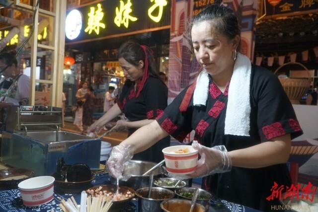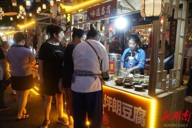 华声在线全媒体记者 向莉君 通讯员 龙涛 7月7日,在湘西土家族苗族自治州吉首市乾州古城,味道湘西沉浸式美食节正热闹进行。 该节会作为湘西州首届文化旅游发展大会组成部分,从4日启动以来,天天顾客盈门。湘西州9县市的腊肉、酸菜、米豆腐等特色美食,愉悦着人们的味蕾。 穿过乾州古城高大的石牌门楼,摆放各种美食的摊位一字排开。 走下阶梯,迎面来到“味道龙山”古秦里耶米豆腐、油粑粑摊位,七八名顾客正在扫微信支付码等待领取点好的小吃。穿着一身秦装的土家族大姐向昌花、秦芙蓉,忙着切米豆腐、炸油粑粑。 采用产自里耶高山冷水田大米制作的米豆腐,配上当地的酱果(小西红柿)汤、酸萝卜丁,嫩滑爽口,是夏天难得的消暑美食,再佐以香脆的油粑粑,味道奇妙无穷。 米豆腐、油粑粑是里耶特色小吃,里耶古城旅投公司还为它们注册了商标,对制作原料、分量提出统一要求。 “味道吉首”坪朗豆腐摊位前,吸引顾客眼球的是石先珍和坪朗豆腐制作坊两位苗家阿姐穿戴的苗族传统服装和银饰品,他们用苗语、汉语同时推介坪朗豆腐,成了美食节上一道风景。 用吉首当地产的青皮豆制作的豆腐脑,具有浓郁的豆香味,撒上白糖、碎花生、芝麻,加上酱油、辣椒、葱花,分别成甜、酸口味,让客人大呼过瘾。 “坪朗豆腐是湘西州非遗传承项目,我们吃的不光是美食,还是文化呢。”给客人递上豆腐脑,石先珍乐呵呵地说。 “乡里自己散养的黑猪,吃一块尝尝……”“味道花垣”苗家腊味摊前,火炉上架着的锅里,切好片的腊肉在吱吱冒油,飘出阵阵诱人的香味,39岁的苗家小伙吴昌望热情邀请客人品尝。 来自娄底的游客秀秀,和吴昌望互加了微信,通过网络下单。“来参加美食节,我主要想找合作商及客源。”吴昌望告诉记者,这3天,已有8个销售商和他建立联系。 “味道龙山”洗车河刘大姐霉豆腐经营者、71岁的刘金霞,同样谈了不少合作商家,3天下来已和30个经销商达成销售意向。 经过三代传承,洗车河刘大姐霉豆腐不仅是湘西州非物质文化遗产,还获得湖南省著名商标及老字号认证。刘金霞告诉记者,她已带动洗车河10多户人家制作霉豆腐。 在古丈毛尖、永顺莓茶、凤凰雪茶、泸溪玻璃椒、保靖洗沙月饼等湘西本地味道摊前,顾客争相购买品尝。 “调粱的酒哎,情满盅嗨,那一起惹呼多、惹呼多……”来自龙山县乌龙山大峡谷景区的土家族阿妹,端着甜甜的米酒,唱着土家族《祝酒歌》,盛情邀请客人品尝。 品了美酒还有好茶。穿着印有“古巄”龙山县区域公共品牌服装的土家族阿妹,端上一杯清香的古巄茶,让客人在甜蜜清爽中,用舌尖感受湘西人民的热情好客。 |