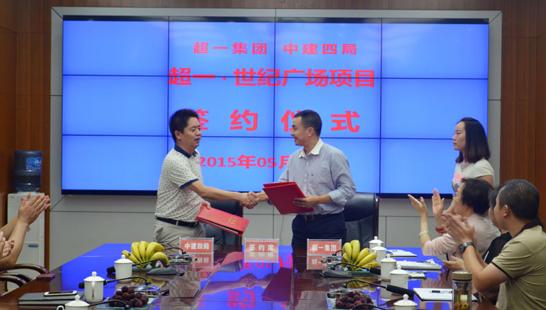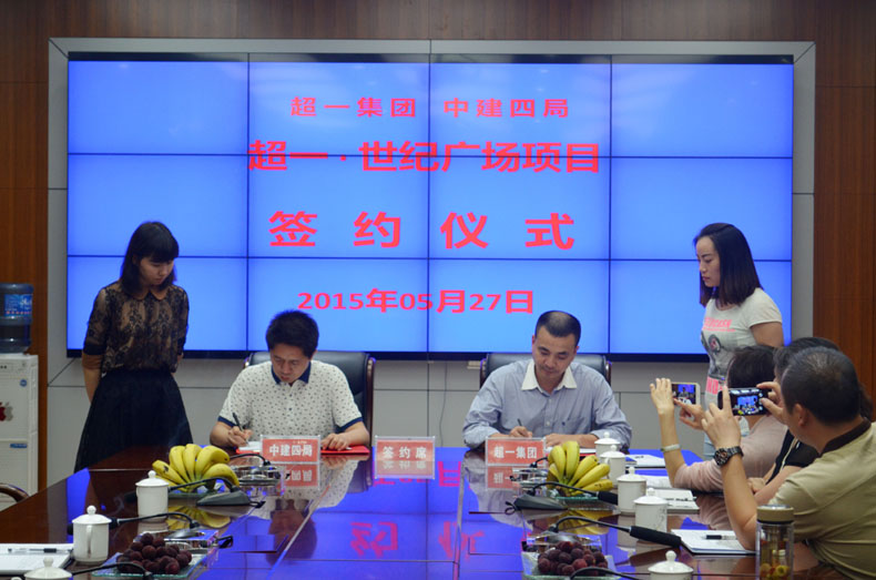 (盛世湘黔网讯 通讯员:袁健)2015年5月27日下午,贵州超一集团与中国建筑第四工程局三公司“超一•世纪广场”项目签约仪式在仁怀时代广场举行。超一集团董事长唐超一、党委书记王毅,中建四局三公司田总经理以及双方的高层管理人员等出席签约仪式。双方在切实落实精品工程、安全工程、廉洁工程和优质工程进行了深入交流。