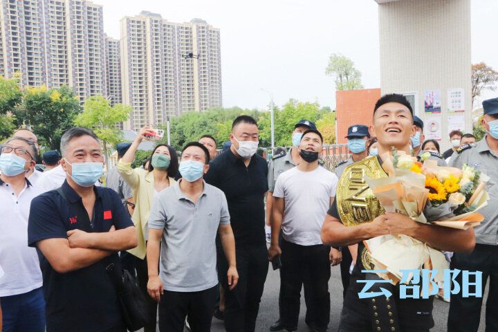 云邵阳客户端 全媒体记者 陈贻贵 9月21日下午,邵阳体校沸腾了。26岁邵阳伢子唐凯带着中国首条男子综合格斗金腰带和满满的荣耀回到母校,闻讯而来的老师、学生们纷纷和他合影、求签名,争相目睹世界冠军风采。