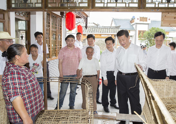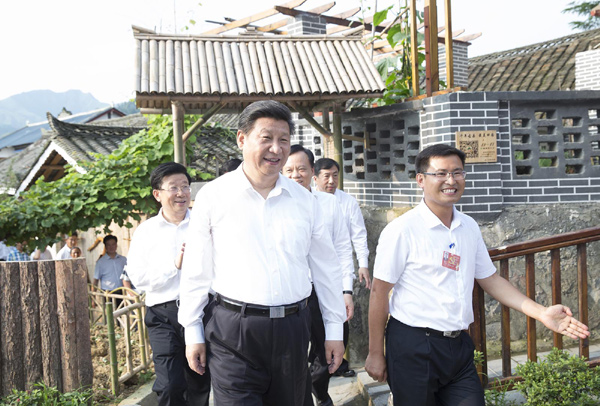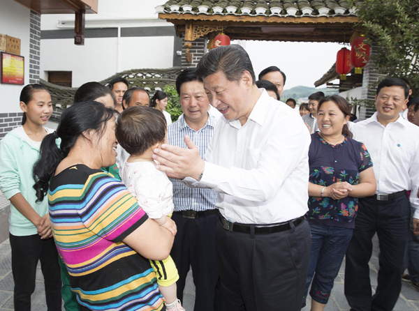 路旁田里,连片的向日葵花开得正艳,习近平下车驻足欣赏。当地干部告诉总书记,伴随美丽乡村建设,山花繁茂的花茂村成了婚纱拍照地,不少附近的市民结婚都到这来。沿着土墙和木栏相伴的乡村小径,习近平边走边询问当地脱贫致富情况。看到鲜花盛开,道路两旁的房子干净整洁,他有感而发地说:“怪不得大家都来,在这里找到乡愁了。”听说水电路都解决了,他又关切地询问卫生情况。看到几位村民正在路边房子里编藤椅,他走进去问:“编一个多长时间?”听说一个三人座藤椅只要编4天,能卖1200块钱,他说:“如果销路好,那收入还挺高。” 习近平:政策好不好,要看乡亲们是哭还是笑 花茂村近年来发展山地现代高效农业、推动农旅一体化,开办了42家乡村旅馆、10个农家乐,村民生活有了显著变化。习近平走进村民王治强经营的农家乐,房前屋后看得十分仔细,“家里种什么?”“土地经营情况怎么样?”“农家乐搞得怎么样?”习近平同村民们围坐在院子里聊起家常,村民们纷纷向总书记介绍自家生活情况,赞赏党和政府的政策好。总书记对大家说,这是我第三次来遵义,特别想了解老百姓尤其是农民的生活。我们的第一个百年目标是到2020年全面建成小康,没有农民的小康就不是全面小康。这次来贵州调研一个很重要的主题就是了解贫困人口如何脱贫致富。通过你们刚才讲的,看到每个人洋溢在脸上的愉悦表情,知道你们过得不错,这里的脱贫致富是比较成功的,你们对党和政府是拥护的。群众拥护不拥护是我们检验工作的重要标准。党中央制定的政策好不好,要看乡亲们是哭还是笑。要是笑,就说明政策好。要是有人哭,我们就要注意,需要改正的就要改正,需要完善的就要完善。 |