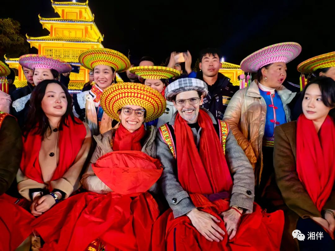 湘伴君这就带大家一起,跟着阿根廷大使一家去隆回“打卡”、游览,领略领略隆回这座湘中小县城的“流量密码”。 阿根廷驻华大使“玩得很嗨” 隆回县虎形山瑶族乡的崇木凼村,四面环山,古木参天,因当地人崇敬古树而得名。 在当地古树公园内,一块光绪九年腊月二十八日立的“永远蓄禁”石碑伫立在古树林山脚,是至今保存完好的瑶乡最早的封山育林禁碑。 这是大使到访的“首站”。1月29日下午,大使在这里参观古树林,了解封禁碑的故事后,为当地能够在100多年前就重视生态保护的做法“点赞”。 崇木凼原生居民是花瑶人。花瑶是瑶族的一个分支,因服饰独特、色彩艳丽而得名。 聆听高亢激昂的呜哇山歌、近距离观赏指尖上的高超技艺花瑶挑花……大使对这些国家级非物质文化遗产兴趣浓厚,不时询问细节,对勤劳、能干的花瑶人表示敬佩。 在瑶王古寨,换上花瑶服饰的大使夫妇,在当地民俗摄影家老后《我的父亲母亲》摄影展板前,重演了一场浪漫“求婚”。 (参加篝火晚会。) 当晚,他们品尝了花瑶拦门酒,和在场的游客与花瑶同胞围着篝火载歌载舞,欢笑声久久回荡。 第二天,大使一行来到岩口镇向家村。这是隆回县乡村振兴示范村,村内建设有旅游项目设施和农业科技示范园,让乡村“美了颜”,又奠定了后续发展“力量源”。