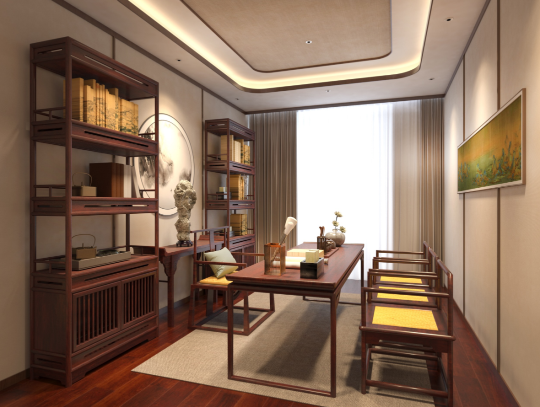 线条流畅的红木家具,再配以意境悠远的山水国画、禅意十足的奇石,还有古色古香的紫砂古籍,给人一种恬静淡然的感觉。品袅袅茶香,使灵魂获得短暂的释放,这未尝不是现代生活中返璞归真的诗意栖居。