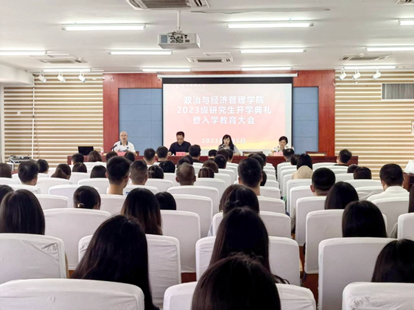 2023年9月5日,贵州民族大学政治与经济管理学院2023级研究生、本科生开学典礼暨入学教育大会在贵州民族大学学生活动中心2001会议室举行,学院党委书记晏超、院长王红梅、副院长田丽敏及全体新生班班主任参加会议,会议由学院党委副书记欧阳章领主持。 会上,晏超作了题为“不负时代使命,有为政经青年”的入学动员讲话,王红梅作了校情院情介绍,田丽敏作了专业介绍,欧阳章领作了安全教育与军训动员。 |