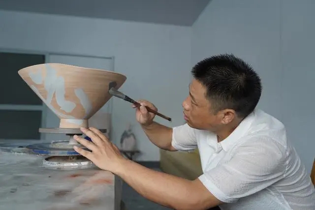 47岁的尹志军手握沾满颜料的笔,笔尖落在泥坯上,笔锋回转间,横竖撇捺等笔画与瓷泥融为一体。以泥坯为纸、以颜料为墨,与传统书法纸上落笔不同,陶瓷书法作品还得经过窑火的淬炼,才算真正完成。 走进位于江西省景德镇市陶艺街20号的“字非字”陶瓷书法非遗工作室里,景德镇陶瓷书法非遗传承人尹志军正在向他的学生们讲解陶瓷书法技巧。工作室的作品展厅内,造型风格各异的作品陈列其中,自由灵动的笔画线条与青花釉里红形成对比,带来特殊的视觉效果,也让人不禁疑问:“是字还是画?” “书法和陶瓷都是中国传统文化的精粹。”尹志军说,陶瓷与书法的结合成就了一门独特的艺术。 ![]() 尹志军在“字非字”陶瓷书法非遗工作室创作陶瓷书法作品。(王凯丰 摄) 聊起书法,尹志军打开了话匣子。出生于湘西农村的他,因爷爷写得一手漂亮的毛笔字,从小就对书法有着浓厚兴趣。二十多年前,尹志军考入景德镇陶瓷大学,在学校创作氛围的影响下,他尝试将书法写在泥坯上,激发出全新的创作灵感。 相比于传统书法,陶瓷书法不仅要在笔墨线条上下功夫,还要充分了解陶瓷材料性质、色釉以及烧制温度等,拉坯、利坯、吹釉等传统陶瓷制作工序也得掌握。 这些积累非一日之功。为了充分学习中国传统书法,尹志军向多位著名书法家拜师学艺。同时,景德镇保留的完整的手工制瓷技艺体系,和遍布全城的陶瓷从业人员和手工制瓷作坊,也给尹志军的创作提供了源源不断的养分。 ![]() 尹志军在“字非字”陶瓷书法非遗工作室内进行吹釉工序。(王凯丰 摄) 2019年,尹志军入选景德镇市非遗传承项目“景德镇陶瓷书法”代表性传承人,他开始思考如何让传统之美更好地融入时代。 篆书、隶书、楷书、行书、草书……传统陶瓷书法主要在杯碗瓶罐等器皿上创作。尹志军在深入研习各类书法的基础上大胆创新,将文字笔画拆解后,结合色彩、设计和绘画,表达出与传统陶瓷书法不同的主题——“字非字”,形成了自己独特的艺术风格,作品先后被中国工艺美术馆、江西省博物馆等收藏。 “‘字非字’是对立统一的概念,字是传统书法艺术,‘非字’则是在此基础上对汉字的解构与重组,进行二次创作。”尹志军认为,只有不断学习了解传统文化,才能在创作中将传统陶瓷书法与现代设计元素结合起来。如今,尹志军创作的陶瓷书法作品已融入茶具、家居、装饰等生活用品和工艺品中,深受年轻人喜爱。 ![]() 游客在“字非字”陶瓷书法非遗工作室的作品展厅内欣赏陶瓷书法作品。(王凯丰 摄) 为了让陶瓷书法技艺发扬光大,尹志军作为江西陶瓷工艺美术职业技术学院的教师,十分注重培养新生代技艺人才。截至目前,他已培养了上百名手艺人。 据景德镇陶瓷文化传承创新中心统计,景德镇市现有市级以上非遗代表性传承人1899人,其中国家级11人,省级以上190人。从事不同工序的手工制瓷工匠不断进入非遗代表性传承人队伍,他们既师从古法又大胆创新,不断让老手艺在传承中“活起来”,让非遗在创新中“潮”起来。 “用当代艺术作品书写中国优秀传统文化传承创新的‘新故事’,是我们这一代非遗传承人必须要做的事。”尹志军说。(记者黄浩然) |