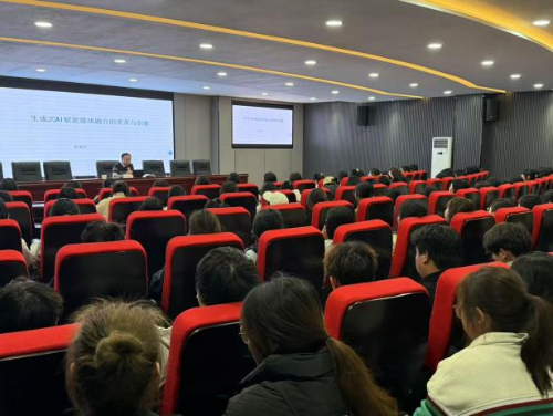 讲座围绕生成式AI技术在媒体融合领域的变革与创新展开。蒋海军研究员凭借丰富的研究成果和实践经验,为在场师生深入浅出地讲解了生成式AI技术的基本原理和发展现状,以及在新闻生产、传播、互动等环节的应用场景。 讲座内容分为四个部分:一是生成式AI技术的基本原理和发展现状;二是生成式AI技术在新闻生产、传播、互动等环节的应用场景;三是生成式AI技术对媒体融合带来的机遇与挑战;四是媒体如何利用生成式AI技术进行转型升级。