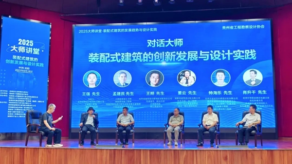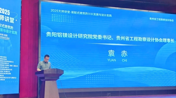 | 8月18日下午,贵阳铝镁设计研究院三楼礼堂内座无虚席,一场关乎建筑产业未来的思想碰撞正在发生,2025大师讲堂“装配式建筑的创新发展与设计实践”在此隆重举行。 本次会议由贵州省住房和城乡建设厅指导,贵州省工程勘察设计协会主办,贵州省工程勘察设计协会绿色建造分会、贵阳市人才发展集团有限公司、贵州富乐森建筑装饰产业发展(集团)有限公司联合承办。汇聚了来自建筑领域造诣深厚、经验丰富的权威专家、知名学者、领军企业技术负责人及优秀设计师代表,聚焦“双碳”目标下装配式建筑的技术创新、产业协同与区域化发展路径,展开了一场高规格、深层次的行业对话。 活动开始,贵阳铝镁设计研究院有限公司党委书记、贵州省工程勘察设计协会理事长袁赤先生作为主办方代表致辞,指明了行业发展的战略方向,更表达了对装配式建筑创新实践的热切期许,为我们注入了强大的信心与动力。