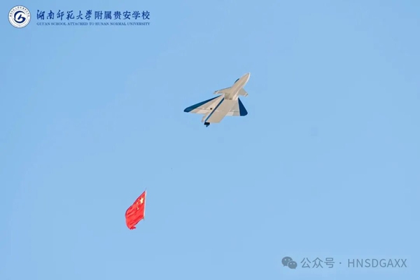 五、科技赋能,梦想起航:航模表演开启育人新篇章 2025级新生苏梓翔、张月凝两位国家级航模竞赛一等奖获奖者,熟练操控歼10、歼20战斗机模型腾空而起。伴随着模型战机的灵活盘旋,鲜红的国旗与“湖南师范大学附属贵安学校”条幅在云霄中共舞,引得现场师生阵阵欢呼。这不仅是精湛技艺的展示,更彰显了新时代青少年“科技报国”的赤诚之心,为学校“五育并举”、培育创新人才的新篇章拉开序幕。 湘黔携手,不负山海之约;贵安启航,共赴教育新程。从今天起,湖南师范大学附属贵安学校将以湖湘文脉为基,融贵州精神为魂,在黔中大地深耕教育沃土,培育担当民族复兴大任的时代新人,书写无愧于时代的教育华章! |