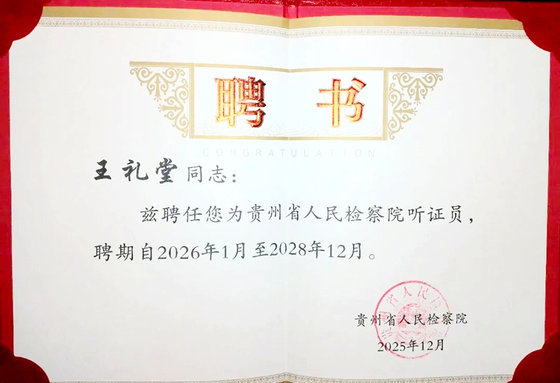| 近日,贵州省人民检察院完成第二届检察听证员选聘工作,贵州省贵商创业服务中心负责人王礼堂凭借其在知识产权领域的突出专业能力获得续聘。此次连任,是对其在商标复审、商标异议等知识产权案件处理方面专业造诣的充分肯定。 聘书 王礼堂长期深耕知识产权实务领域,在商标法律事务方面积累了深厚的专业经验。作为贵州省贵商创业服务中心负责人,他不仅在商标异议、复审等法律实务中展现出精湛的专业水准,更在服务企业创新发展中发挥了重要作用。获聘后,他将重点运用自身在商标案件领域的专长,参与检察机关知识产权类案件的听证工作,为提升司法办案的专业性和公信力提供有力支撑。 检察听证员制度是检察机关深化司法公开、促进司法公正的重要机制。作为具备专业背景的第三方力量,听证员能够从专业视角提出客观中肯的意见建议,有效提升检察办案质量。王礼堂的续聘体现了司法机关对专业力量参与司法实践的重视,特别是在知识产权保护这一专业化程度较高的领域。 听证员证 “连任听证员既是信任,更是责任。”王礼堂表示,“我将充分发挥在商标法律实务方面的专业经验,秉持客观公正的立场,认真履行听证员职责,为知识产权司法保护贡献专业智慧。”他特别表示,将重点关注商标权利保护、品牌创新发展等领域的法律实践问题,助力营造良好的法治化营商环境。 贵州省贵商创业服务中心作为服务地方经济发展的重要平台,长期致力于为企业提供商标、版权等专业化服务。王礼堂此次续聘,不仅彰显了其个人专业能力,也体现了专业服务机构在法治建设中的积极作用。通过专业力量深度参与司法实践,将进一步提升知识产权保护工作的专业化水平,为实施知识产权创新驱动发展战略,筑牢法治根基,助力贵州、服务全国。 “成功之父”团队负责人 王礼堂先生为经备案的商标代理专业人员,专注于知识产权服务领域,核心业务涵盖商标与版权的申报及相关案件代理。至今,已为近百家企事业单位、商协会及政府部门提供专业服务,业务范围广泛覆盖贵州、甘肃、云南、四川、青海、广东、浙江、江苏、北京、天津、福建、上海、内蒙古、台湾等地。 在商标案件方面,王礼堂先生展现出卓越的专业能力与丰富的实战经验。曾成功代理多起复杂的商标异议及驳回复审案件等,例如“汉堂御壶酱”“加多财”“金沙红粮谷”“小蛮樱”等商标遭异议案件,以及“友朋四海”“常安”“醉旺三生”“东郎”“黔赫堂”“广音”等商标被驳回后的复审案件。通过对案件的深入分析与精准研判,并精心组织提交法律材料,最终成功助力客户取得国家知识产权局的商标核准注册,切实维护了客户的品牌权益。 |