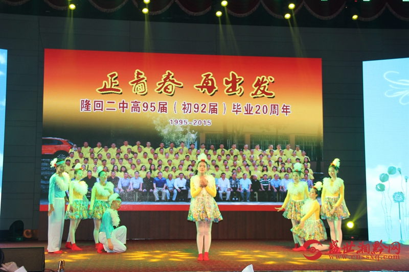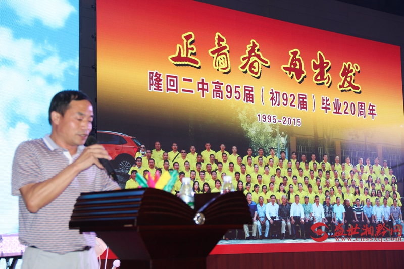 正青春 再出发隆回二中95届同学隆重举行毕业20周年联谊晚会 隆回籍知名歌手袁树雄、欧阳倩倩现场助兴 (盛世湘黔网讯 本网记者 李芳)10 月3日(隆回二中武术队表演《武动校园》) (隆回二中党总支书记王书博致辞) 本次晚会由隆回著名歌手袁树雄和邓静、王珊珊、邓顺雨三位同学主持。隆回二中党总支书记王书博代表学校致辞,代表学校对各位同学对母校的盛情表示感激,对各位同学在各行各业领域取得的成绩表示祝贺,并希望一如既往关注支持学校和学弟学妹们的发展。一段沙画表演《继往开来》伴随邓顺雨同学的英文解说鲜活演绎了隆回二中青春学子从懵懂校园岁月逐步走向成熟成才之路。 来自邵阳学院舞蹈系的学生激情表演了《西班牙舞蹈》,隆回二中武术队和团委带来的《武动校园》和音乐快书《群鸟逛二中》展示隆回二中生机勃勃、桃李天下的崭新景象。 隆回二中舞蹈队带来的《印度风情舞》展示了隆回二中的别样柔情,由金地产机构董事长、优客工场联合创始人周金旺同学倾情朗诵的诗歌《青春的种子》表达了学子对校园的感恩之情。 (金地产机构董事长、优客工场联合创始人周金旺同学朗诵原创诗歌《青春的种子》) (隆回著名歌手袁树雄现场演唱家乡名曲《我是魏源故乡人》) 隆回籍著名歌手、华语实力原创音乐人袁树雄现场为大家激情演唱耳熟能详的家乡隆回形象歌曲《我是魏源故乡人》,唱出了隆回人的胸怀和气概,让所有师生激情澎湃。作为隆回县形象大使的袁树雄是湖南歌坛颇具实力的原创歌手,曾先后出版五张专辑,其原创歌曲《哭咖啡》、《爱过以后》、《恋爱宝贝》等歌曲深受歌迷喜欢,歌曲《我是魏源故乡人》更是成为湖南城市形象歌曲经典,幽默搞笑的隆回方言版歌曲《三合街》近日来更是红透网络,在家乡更是人气爆棚。 (隆回籍新锐歌手欧阳倩倩现场演唱《爱在天地间》和《大展宏图》献给隆回二中师生 “爱的呼唤让我们在一起,在一起走过了风和雨,在一起走来了新天地”,一首《爱在天地间》打动了现场同学,贵州智维盛世文化传媒公司签约90后隆回籍歌手欧阳倩倩的靓丽亮相,赢得众多同学的欢迎,动人的歌声在师生中产生共鸣,据其经纪人罗文骅同学介绍,欧阳倩倩毕业于贵州师范大学音乐专业,隆回县司门前人,曾先后获得金钟奖和青春中国等歌唱大赛奖项,是湖南歌坛冉冉升起的新生代歌手,也是湖南知名助学公益机构——邵阳驿站之家志愿者协会的公益形象大使,被誉为隆回花瑶大山飞出的百灵。欧阳倩倩现场还为大家演唱《大展宏图》表达了对隆回二中和师生的祝福。祝愿各位同学在各自领域大展宏图,展翅翱翔,祝愿隆回二中再创佳绩,桃李天下。 本次联谊会得到了广东中格家具集团总裁陈晓锋、隆回恒祥房地产开发有限公司董事长张紫红、成都金艾薇科技有限公司董事长李才喜等同学的大力支持。 (那些年,正青春,再出发) (湖南华语原创歌手袁树雄在现场演唱<我是魏源故乡人>) (歌手欧阳倩倩隆回演出赢得不少家乡粉丝) 隆回籍著名歌手袁树雄和新锐歌手欧阳倩倩合影) |