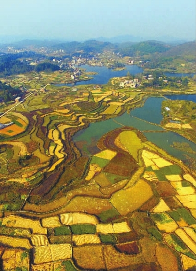空中俯瞰武冈市双牌乡浪石村,十分美丽。