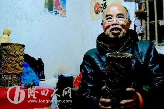 这位绝技艺人名叫王维湘,今年64岁,家住雨山铺镇梅冲村,以前做过石匠,后来改行开三轮车。每当三轮车没有生意的时候,为了打发时间,他就找来楠竹,在竹筒上做雕刻。