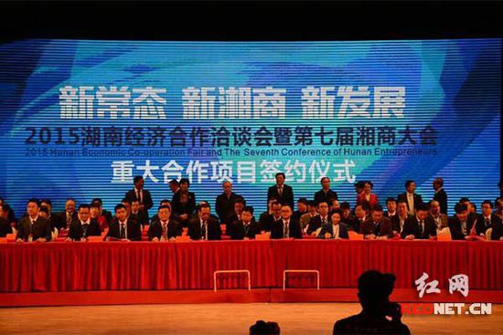 2015年12月16日,黔中国际·全球招商大会于贵州省织金县黔中国际商贸博览城项目地隆重召开。来自东莞、浙江、重庆、深圳等地的工厂及运营代表,来自湖南、贵州等地的经销商代表和投资商,全国各大主流媒体记者悉数出席,共同鉴证黔中国际全球招商的盛大启动。是贵州湘商联合会会长单位弘宇地产公司在织金县大型城市商贸综合体项目,被列为织金县委县政府2012年城市改扩建招商引资的重点项目。项目占地400余亩,总投资25亿元,规划建筑面积73万余平米。 10、“互联网+平台”龙里东方宏基电商产业园“尾货”电商产业园运营 12月26日,东方宏基电商产业园一期商铺盛大开盘,300余套商铺开盘热销九成,劲销4亿,掀起东方宏基商铺热销传奇。东方宏基电商产业园作为贵州湘商联合会执行会长沈鸣的东方宏基集团挺进贵州的开山之作,致力于打造中西部电商特卖批发市场,24万平方米规模潜心打造的中西部唯一特卖商品批发市场,其以“互联网+平台”的运作模式、电子商务、商品展示、交易、仓储、物流、金融、商务配套等全方位立体式的服务平台。东方宏基电商产业园位于贵新高速公路龙里站出口,总投资20亿元,项目规划为西南唯一尾货、库存商品、中药材、中国地理标志产品交易市场,建成后将成为中国西南最大的商品批发电商产业园。