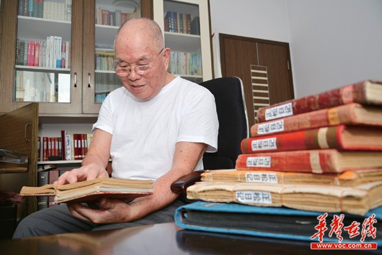 8月29日上午,长沙市西街花园小区,黎树祥正在整理自己写了74年的日记。 ![]() 黎树祥爹爹写的日记。实习生 任梦龙 记者 田超 摄 核心提示 今天是中国人民抗日战争暨世界反法西斯战争胜利69周年纪念日。今天上午,首都各界会举行隆重纪念活动,党和国家领导人将出席。在抗日战争期间,中国军民前赴后继、浴血奋战、英勇抵抗。长沙八旬老人黎树祥经历了这段经历,并写下“抗战日记”,记录下了当年的抗战风云。 黎树祥,是一名84岁的老兵,他从10岁就开始写日记,一直坚持了74年,共写了约2000万字。74年间,他用日记记录了抗日战争期间大多数国民生活的真实写照;也记录了新中国成立后经济的发展和社会的进步。他说:“是抗战胜利改变了我的命运。” 9月2日,三湘都市报记者专访了这名老兵,跟随着他日记中的故事,我们仿佛又回到了那个“抗战时期”的长沙。 “抗战胜利改变了我的命运” 2日上午10点30分,长沙市芙蓉区西街花园小区,84岁的黎树祥坐在书房的椅子上整理着日记。这10年来,除了写日记,他每天都在整理以前的日记。 小区50米外就是人民东路,2号线地铁口就在小区的北门。除了写日记,黎树祥每天都会坐四分钟地铁去体育新城游泳。 “游泳馆开始不肯让我游,还要签免责协议,生怕我出事。”黎树祥多年来每天游泳锻炼,身体非常健康。 “直到现在,想起自己当时为地下党工作,心里仍然忍不住自豪。”黎树祥称,自己的贡献微小,很多为抗战献出了生命的人,才值得永远纪念。黎树祥坦言,“抗战胜利不但改变了我的命运,也改变了国人的命运。” 74年写下2000万字日记 1986年,黎树祥离休后被聘到市政府参加长沙年鉴的编写,后来又帮助女婿打点生意。直到十年前,才歇了下来,开始了自己的“大计划”——将自己写了74年的日记进行整理。 在黎树祥的书房中,84本日记整齐地排列在书柜中,每一本都标上“正松日记”,“正松”是他的别名。 “从1941年开始,也就是我10岁的时候,一直写到现在。中间有几年的日记在战争中遗失了,后来我又根据记忆补写了一部分。”黎树祥说,战争时期,日记是用写毛笔字的本子写的,正楷繁体字;解放后繁体字简化,就用直书的宣纸本,后来写的改成了横书。1950年后,他开始对日记本有要求:小32开,180页以上,纸质要好。 目前,黎树祥已经整理了约106万字的日记录入电脑。根据估算,这84本日记约2000万字。从抗战时期的动乱生活,到最后中国解放;从经济发展,到社会进步,全面记载。 “写了这么多年,我希望能申请吉尼斯纪录。”黎树祥表示,这是他坚持的目标。他还有个心愿,希望这些整理好的日记可以出版成书,或者成为文档资料,让它成为社会财富,也算是一个纪念。 ■记者 李琪 实习生 朱甜甜 抗战记忆 亲历四次“长沙会战” 1939年9月14日,日军进犯,长沙第一次会战。当时,正在读初小的黎树祥每天都会听到老师分析战况。 1941年9月上旬,第二次长沙会战。日军首次进入长沙县境内,进入高小的黎树祥第一次感觉到“战争”。9月26日,他刚到学校,就碰上日军飞机轰炸。“有人大喊,同学们赶快躲起来,不要有响声。”这天,他写下了第一篇“战争日记”。 1941年12月底,第三次长沙会战开始。黎树祥回忆,当时很多年轻人被抓壮丁。 1944年5月,第四次长沙会战。6月16日,日军对长沙城区和岳麓山发起猛攻;18日,城内守军被迫突围,长沙沦陷。因随时需要逃命,黎树祥没了写日记的条件。1949年初,黎树祥被发展为地下党外围组织,走上了革命的道路。 “沦陷”时期的逃难生活 “所有交通要道都有日本兵把守。隔几天,就有日本鬼子出来‘打掳’,老百姓吓得都往山里跑。” 在长沙沦陷时期,黎树祥没有写日记,但战争结束后,他对当时的“沦陷生活”做了详细记录。 “那天午后,我和庆余侄准备去捕鱼,忽见许多人慌慌张张地朝南向奔跑,有人对我们说:日本鬼子来啦,还不快跑!我们急忙跑回家里,只见哥哥嫂嫂们在慌乱地拆蚊帐、捆被窝…….我们随着大家朝着枫树河渡口方向跑去,一路上汇聚好多人,都打算逃到浏阳河南岸的山里去。”黎树祥回忆,当时才跑得一小半,发现日本兵也朝着这个方向来了!大家又跑到了深山里的石禾冲。 石禾冲很小,一下子挤满几百人,顿时乱作一团。几个长者商讨后决定:连夜突围。凌晨的时候队伍出发,大人反复交代小孩,不许有灯火,不要有声音。“来到邓家冲丁字路口,朦胧中突然发现大路上坐着好多日本兵!我们吓得魂不附体,掉头就跑!队伍顿时大乱,大家纷纷往两边的树林中钻。” 之后,黎树祥一家逃到了深山里的姑爷家,躲了20多天后才回家。“进门一看,家里一片狼藉:仓里的粮食没了,猪和鸡鸭也没了,遍地是稻草、鸡毛、猪皮、骨头、灰烬、粪便等!有些家具被打烂了、烧掉了。” 日记摘录 听闻老师讲抗战 写下血泪日记 “放学回家时看见一个老婆婆坐在门前啼哭,我对他(她)说,老人家,你哭什么,他(她)说日本鬼子又到了桃林(汨罗市范家园镇)。我说日本鬼子又退了呢,他(她)问怎样退的,我说他用没良心的手断(段)放毒挖丝(瓦斯),不料风望(往)那边一吹,他就退到新墙河(湘北岳阳境内)去了。”1941年12月24日,听闻了学校先生讲述当时战情后,黎树祥写下了这篇日记。 |
