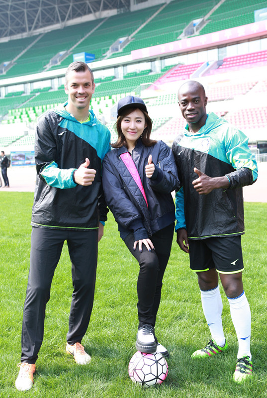 (伊班、法图斯与文筱婷) 2016年3月2日,中甲球队贵州恒丰智诚足球队在贵阳奥体中心进行了球队冬训归来的第一场训练。球队26岁的新任美女董事长文筱婷也来到球场与球员进行互动。