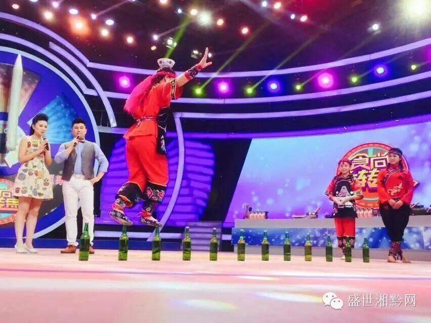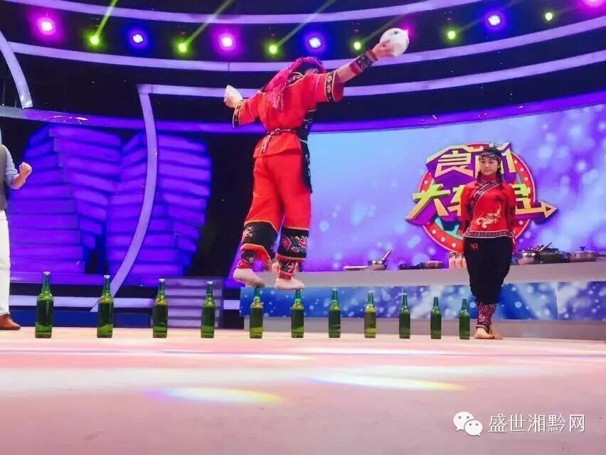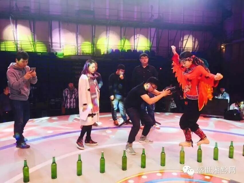 绝技明星登场了,这不是刚挑战赤脚行走啤酒瓶打破世界吉尼斯纪录的唐羽荟吗? 小失误并没有影响她继续向前走,摄影的帅哥够紧张的