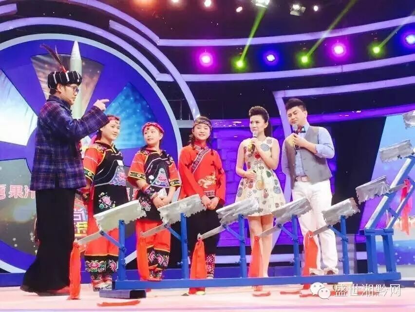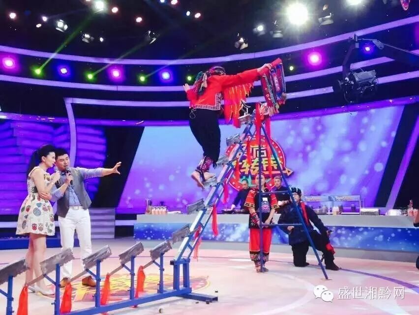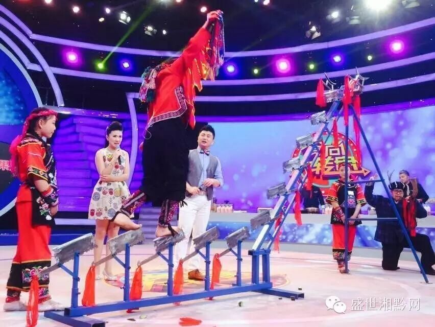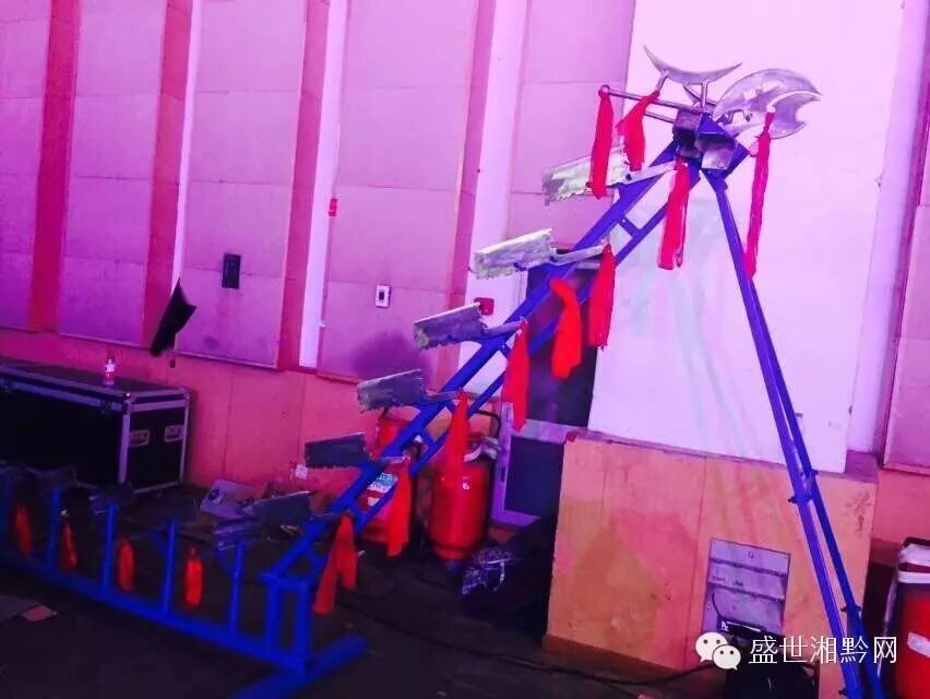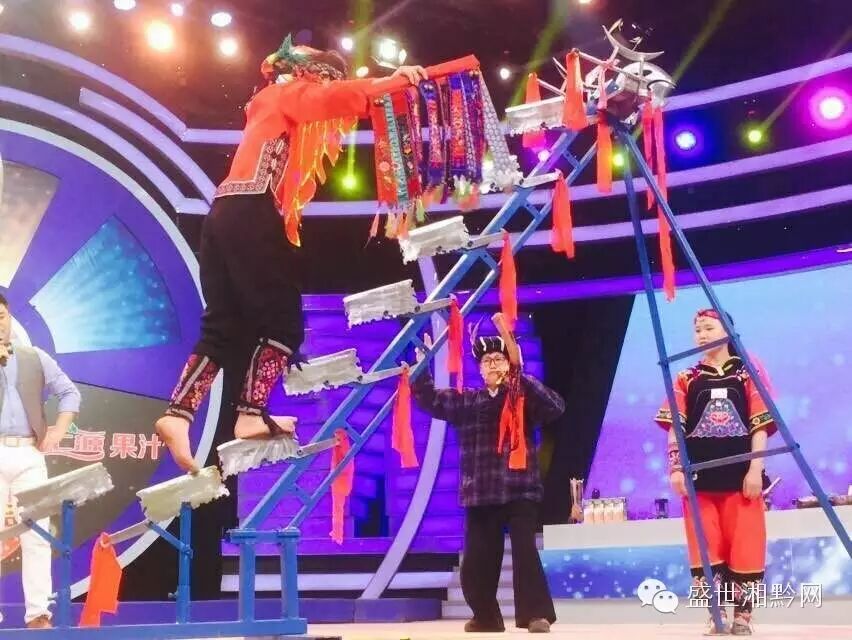 竟然继续往前走,登上刀梯,刀王吹起了苗族法宝——牛角,为弟子助威