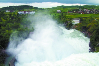 5月9日,嘉禾县观音山水库开闸放水泄洪。连日来,该县出现强降雨,致使河流、水库水位上升。 黄春涛 摄