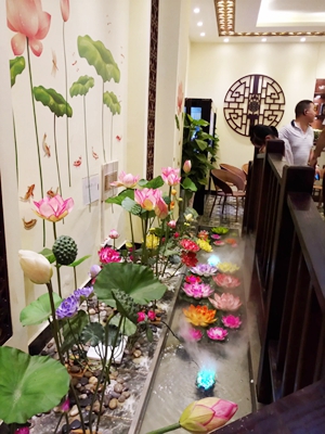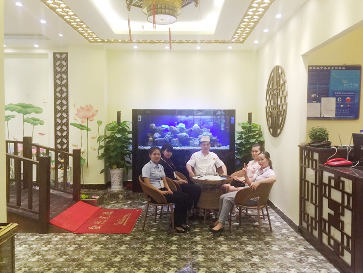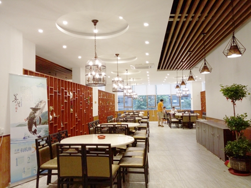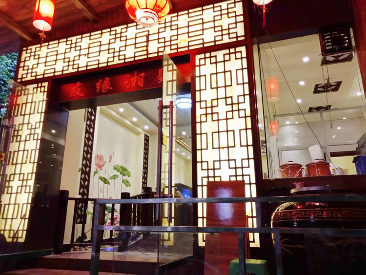 张总的“友缘湘聚”新派湘菜体验馆就位于大营坡紧挨云岩区政府大楼的新添大道边,对面即是正在拔地而起的中建华府E栋三幢高楼,在化工路掉头即可,在化工路口有个门牌侧门入口,正门就紧挨云岩区政府大楼。 友缘湘聚新派湘菜体验馆,规模不大,位于依山而建的斜坡上,正面入口门牌不大,红墙青瓦,“友缘湘聚”应该位居街道三层上,数十步青石台阶映入眼帘,大红灯笼逐级串联,引领你走进这家闹中取静的特色湘菜馆。夜幕降临,华灯初上,透过繁华喧闹的都市水泥森林楼群,偶尔看到这样的“红墙·青瓦”的门头“友缘湘聚”几个字熠熠生辉”,看到洁净的青石台阶,还有在夜幕中星星点点的红灯笼,你就会觉得时间停止,感受到自己的心跳加速,那是熟悉的地方,仿佛远方的游子拖着疲惫的身躯归来,望见家中的灯火。一种急切的心情油然而生,拾阶而上,闻香而来,每上一步就感觉离家更进一步。 沿途有宣传横幅,原来友缘湘聚已经成为大湖有机鱼特许商家。 辣椒是湘菜中不可缺少的作料。辣椒红也是湘菜馆设计中不可缺少的元素。门口红格窗花简单明快,红色代表热情,温暖,门口一口大酒缸洋溢着酒香。 真没想到门口还巧妙设置有拱桥流水和荷花,据说荷花体现湘潭特产——寸三莲,湘潭寸三莲是湖南莲子农家品种,现主要分布在湖南省湘中地区各籽莲产区,湖北、河南等地也有少量种植。寸三莲,又称“湘莲”,古即为朝廷贡品。经过数十代人的努力,它已成为湘潭市的支柱产业,远销北京、上海、广州、香港及欧美。湘潭市的“莲城”美誉也因此名声远扬。 木质栏杆可以倚栏小憩,电动喷泉,在美妙的旋律下,荷花绽放,加上荷香缕缕,和墙绘荷花相互映衬,虚实结合,仿佛还散发着沁人清香,使人心旷神怡。 进入餐厅内,左边是生态鱼缸,对面的就是简约的前台和笑容可掬的前台美女,顾客可以选购各种酒水饮料和自由买单。POSS机刷卡、微信转账均可。 这里是友缘湘聚最有特色的大湖有机鱼。这里笔者要特别介绍下,伴随着绿色、有机、生态等健康理念逐渐被人们熟知、接受并日益成为主流,三聚氰胺、苏丹红、转基因大米等食品安全问题的曝光引发了消费者强烈的关注和担忧。有机食品作为食材金字塔的顶尖珍品,深受广大消费者的欢迎和喜爱。 据该店总厨、总经理张友粮介绍:大湖有机鱼来自天下闻名的湖南洞庭湖,是采用“不投饲料、不投肥料、不投渔药”的天然生态养殖技术,在纯净天然生态湖泊自然生长。“好湖出好水,好水出好鱼”,大湖有机鱼是自然生长、原始捕捞,因此,大湖鱼肉质细嫩、营养丰富、生态安全、味道鲜美,没有泥腥味,是难得的天然绿色生态鱼。大湖水殖股份有限公司(简称大湖股份)成立于1999年1月,2000年6 月12日在上海证券交易所上市,是全国唯一采用水面权益资本化方式上市的公司,被誉为“中国淡水养殖第一股”。作为“中国淡水鱼第一股”、中国水产行业领军企业,秉承着“天然大湖,自然生长”的经营理念,以“从湖面到餐桌,打造安全、诚信、健康产业链”为己任,以“缔造中国淡水鱼行业领袖品牌”为目标,凭借业内领先技术和严格的质量控制体系,为消费者提供方便、优质、美味的健康食品。大湖有机鱼作为国内仅有的拥有有机认证的两家淡水鱼生产商之一,友缘湘聚新派湘菜体验馆特别引进大湖有机鱼登陆贵阳,不仅为广大贵阳市民带来天然、美味、安全的有机水产产品,更是要有力的诠释有机、健康的生活理念。 友缘湘聚湘菜体验馆定位精品社区店,虽然不大,只有一层楼,但格局合理、装饰精致,无论鸟笼、伞状灯饰还是简单绿植,大厅仅有四百多平方,只能摆六七桌,左边布置有木格屏风隔断,当然有宴席需要的话移开屏风可以拓展到十桌,特别适合家庭亲朋好友和企事业单位中小范围聚会。 木格屏风布置精致的小盆景和装饰品,又分隔成几个卡座,典雅、清新,适合三五或七八个好友小憩品味。 友缘湘聚因场地所限,仅有五个包房,张友粮是贵阳知名湘菜馆鸿通城品湘去长沙湘菜馆的行政总厨和知名的湘菜大师,有着丰富湘菜烹饪经理和独特的创新意识。作为其本人的创业店在筹备之初就特别创意,还征求过本人的意见。因是湘菜馆,自己名字中也有“友”字,又主打家庭和友情聚会,起名“友缘湘聚”就是“有缘才能相聚,相聚新派湘菜体验馆”,故起名分别起名“喜湘逢”、“来湘聚”、“意湘投”、“常湘忆”、“常湘思”等名字做包房名,别有湘味。