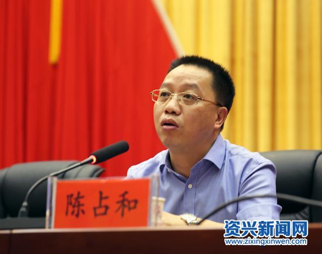 郴州市委组织部部务委员、正处级组织员陈占和宣布资兴市人事调整的决定。