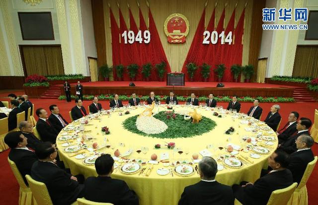 据新华社电 国务院昨晚在人民大会堂举行国庆招待会,热烈庆祝中华人民共和国成立65周年。习近平、李克强、张德江、俞正声、刘云山、王岐山、张高丽等党和国家领导人与3000余名中外人士欢聚一堂,共庆佳节。 中共中央总书记、国家主席、中央军委主席习近平代表党中央、国务院,向全国各族人民、全体共产党员,向中国人民解放军指战员和武警部队官兵,向各民主党派和无党派人士致以崇高的敬意;向香港特别行政区同胞、澳门特别行政区同胞、台湾同胞和广大海外侨胞致以诚挚的问候;向支持和帮助新中国建设事业的友好国家和国际友人致以衷心的感谢。 人民大会堂宴会厅华灯璀璨,鲜花绽放,洋溢着庄重热烈的节日气氛。主席台上方高悬着庄严的国徽,“1949-2014”的大字年号在红旗映衬下格外醒目。 晚6时许,在《迎宾曲》声中,习近平等党和国家领导人步入宴会厅,全场响起热烈掌声。 招待会开始。全场起立,高唱国歌,庄严雄壮的《义勇军进行曲》在大厅久久回荡。 习近平指出,面向未来,我们必须坚持把中国共产党建设好,坚持党要管党、从严治党,增强党自我净化、自我完善、自我革新、自我提高能力,永不动摇信仰,永不脱离群众。凡是影响党的创造力、凝聚力、战斗力的问题都要全力克服,凡是损害党的先进性和纯洁性的病症都要彻底医治,凡是滋生在党的健康肌体上的毒瘤都要坚决祛除,使中国共产党始终同人民心连心、同呼吸、共命运。 习近平强调,面向未来,我们必须坚持谦虚谨慎、戒骄戒躁。中国仍处于并将长期处于社会主义初级阶段的基本国情没有变,实现13亿多人共同富裕任重道远。生于忧患,死于安乐。无论什么时候我们都不能骄傲自满,党不能骄傲自满,国家不能骄傲自满,领导层不能骄傲自满,人民不能骄傲自满,而是要增强忧患意识、慎终追远,始终保持艰苦奋斗的作风。 习近平指出,祖国960多万平方公里的锦绣河山,为我们创造伟业铺就了广阔舞台。中华民族5000多年创造的灿烂文明,为我们奋勇前进提供了强大精神力量。新中国成立65年来取得的巨大发展成就,为我们再创辉煌奠定了坚实基础。全党全国各族人民、海内外中华儿女,让我们手拉手、肩并肩,高高扬起中国航船的风帆,朝着中华民族伟大复兴的光辉彼岸,继续破浪前进吧。 在喜庆欢快的乐曲声中,中外宾朋举杯共庆中华人民共和国65华诞,同祝国泰民安、世界和谐。 中共中央政治局常委、国务院总理李克强主持招待会。 马凯、王沪宁、刘延东、刘奇葆、许其亮、孙春兰、孙政才、李建国、李源潮、汪洋、张春贤、范长龙、孟建柱、赵乐际、胡春华、栗战书、郭金龙、韩正出席招待会。 从党和国家领导职务上退下来的老同志江泽民、胡锦涛、李鹏、朱镕基、李瑞环、吴邦国、温家宝、贾庆林、宋平、李岚清、曾庆红、吴官正、李长春、罗干、贺国强也出席了招待会。 出席招待会的还有:中共中央书记处、全国人大常委会、国务院、最高人民法院、最高人民检察院、全国政协、中央军委领导同志和从领导职务上退下来的老同志。 □揭秘国庆招待会 国宴用餐以淮扬菜为基准 昨晚,中华人民共和国成立65周年国庆招待会在人民大会堂二层宴会厅举行,国庆招待会作为中国的一场重大政治宴席,它不仅仅是一顿晚宴,更是各民族、港澳台同胞、各界人士普天同庆的团圆时刻。招待会一般会邀请哪些人出席,用餐位置有无讲究,饮食如何安排?昨日,外交部礼宾司前代司长、中国驻斯洛文尼亚共和国首任大使鲁培新接受京华时报记者专访,揭秘国庆招待会上的点点滴滴。 >>嘉宾邀请 会邀请农民和企业家等 京华时报:一般会邀请哪些人出席? 鲁培新:每年举办的国庆招待会一般由国务院机关事务管理局和外交部礼宾司共同承办,在筹办前期,他们会提前给中央提交一份简练的国庆原则报告,报告大概两三页,内容包括时间、地点、邀请名义、邀请规模等。 在实际操作中,国务院机关事务管理局主要负责邀请国内各界人士,具体排座按区分配,有国家领导人、前国家领导人、政府官员、各民主党派、军队人士、烈士家属、知识分子、文艺界人士、科技工作者、教师、港澳台同胞、工人农民代表、优秀企业家等。 京华时报:是否会邀请外国领导人? 鲁培新:为减少耗费资金,国庆招待会如今不搞大型庆祝活动,即使逢五逢十也不会特地邀请外国重要外宾(总统、总理),如果正好在国庆期间,有些部委有重大外宾要接待,便会顺理成章地邀请他们参加。一般邀请的国外友人包括,各国驻华大使和夫人、外国专家、联合国系统驻中国代表等。 过去有一个特殊的例子是柬埔寨前国王西哈努克,由于他经常在北京,因此多次受到国务院邀请参加国庆招待会,但这种情况并不多见。 >>入席事项 请帖附平面图方便入座 京华时报:筹备期间有何注意事项或禁忌? 鲁培新:由于考虑到来宾中有信奉天主教人士,餐桌桌次排列中没有第13桌。在过去500桌的晚宴是一个庞大的工程,为防止出现因找不到位置而导致场面混乱的情况,一般发请帖时,我们会将各桌桌次都写在请帖上,信封里面还会附上一个宴会厅平面图,来宾可以一目了然知道自己所在桌次的位置。 京华时报:整个流程如何安排?鲁培新:9月30日晚上6点招待会开始,整个国宴时间约一个半小时,主席台上方有一个会标“1949-2014”。领导