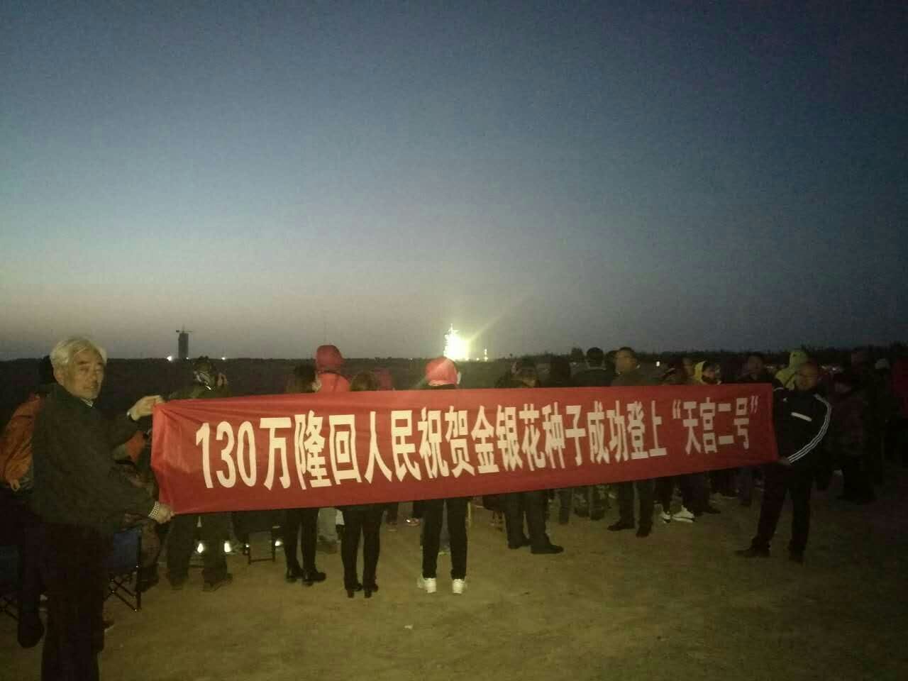 “升空了!升空了!”7点30分,伴随着官兵和民众激动的欢呼声,“神舟十一号”飞船顺利升空,努力挣脱地球的引力,向着寥廓苍穹飞翔、飞翔!拖曳着一条美丽的曲线徐徐奔向遥远而神秘的茫茫太空。 “隆回金银花种子顺利升天了” 伴随神州十一号升空的还有精选自“中国金银花之乡”——湖南隆回的50克“白云”良种金银花种子,将开始为期33天的太空旅程,将在“天宫”进行太空诱变育种实验。 约575秒后神舟十一号载人飞船与火箭成功分离,进入预定轨道,顺利将景海鹏、陈冬2名航天员送入太空,发射取得圆满成功。正在印度出席金砖国家领导人第八次会晤的中共中央总书记、国家主席、中央军委主席习近平第一时间发来贺电。 “太激动了,太激动了,能够亲眼见证发射,祖国太伟大了,为国家骄傲、为你们点赞”。现场目睹发射的隆回乡友兴奋地拉开了横幅: 130万隆回人民祝贺金银花种子成功登上“天宫二号”!冻得发紫的脸上涌现着花开般的笑容。站在欢呼人群中的重庆市隆回商会筹委会负责人、知名记者李嘉热泪盈眶、仰天长啸,为了这一刻,为送金银花种子专程连夜赶程的他早已满身疲惫,但此刻重要坦然了,冻得发紫的脸上抑制不住笑容。 “天大的喜事,隆回金银花上天了!”在国内外的魏源故乡人湖南隆回乡友圈欢呼祝贺! 发射场内外的紧张与激动 2016年10月16日,夜深了,天下隆商、同乡负责人微信联谊群上的众多异地隆商还在为重庆过来专程参加神十一飞船发射的隆回老乡(重庆隆回商会筹备工作负责人)李嘉先生是否沿途顺畅,准点到达而不能入睡。 (重庆市隆回商会筹委会负责人李嘉登机) 因为他承载着隆回县委、县政府与隆商众望的承担隆回县金银花种子上“天宫二号”实验站的使命与荣耀。在关注期间,得知他沿途按时间进程、接送人员如序到位,众多乡友才放心下来。正是隆回老乡的不懈帮助,让隆回金银花有机会随“神舟十一号”飞船一起飞入太空,登上“天宫二号”实验站,这是130万隆回人民的骄傲。 (兰州邵阳商会执行会长刘年国) 一直以来,隆回政府和各界有识之士在外地奋斗拼搏,积极推动隆回商会的成立,通过商会整合资源。本次发射的神州十一号有三大任务,其中任务之一就是进行太空科学实验,农业技术是必不可少课题,获悉这一消息后,在隆回县委县政府和重庆市隆回商会筹委会等有关隆商的争取下,得到了发射基地有关部门的支持认可,并得到了兰州邵阳商会执行会长刘年国等隆商的大力协助,在发射前夕由重庆隆回商会筹委会负责人李嘉携带金银花种子直飞航天城。据悉,兰州到酒泉四百多公里、酒泉到航天城两百多公里,在获得进入发射基地特许后刘年国安排60岁的邵阳邵东籍企业家罗凯元星夜亲自驾车护送到基地,李嘉10月16日下午三点还身在重庆,昼夜兼程,于凌晨三点左右才赶到发射基地,50克寄托隆回百万民众期望的种子,将由航天员带入天宫二号进行培植,成功与否关系到百万隆回人民和广大南方金银花农的未来。 (兰州隆回打出祝贺横幅) 神州十一号顺利升空后,天下隆商组织负责人微信交流群热闹非凡,纷纷表示,此次异地隆回携手通力合作争取隆回金银花种子上天,将极大提升隆回的形象,将为隆回县的金银花产业带来不可估量的正能量营销。 隆回金银花将迎来契机 湖南魏源故里、湖南省邵阳市隆回县是“中国金银花之乡”,隆回金银花种植历史长,品种优,是中国地理标志保护产品。全县从事金银花种植的药农18万人,金银花种植面积20.6万亩,年产干花1.2万吨,占全国金银花总产量的50%以上,该县已成为全国最大的原生态金银花种植区。2003年由国家权威部门分析确定隆回县全境富硒,与湖北恩施、陕西紫阳并称“中国三大硒都”,富硒土壤的面积居三者之首。经中国科学院植物研究所检验,麻塘山乡、小沙江镇地区金银花硒含量达0.98mg/kg,高于国家规定的富硒食物标签标准。 此次搭乘神舟十一号飞船进行太空诱变育种实验的“白云”金银花花冠半开裂,无毛,平均长3.9厘米,平均27朵花聚合成伞状花序或团状花序。花管半开放,花期7~10天,千花蕾鲜重58.92克,千花蕾干重14.62克,出干花率24.81%,干花绿原酸含量高达6.97%,比普通的灰毡毛忍冬高60.97%。