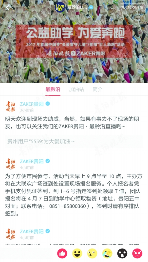 经过近半年的筹备和积极报名,2017年首届中国梦“关爱留守儿童”——贵阳“万人助跑”大型公益助学活动今日上午在观山湖区举办。据悉,现场分为数个方阵起跑。 据介绍,本次活动由贵州省励志助学中心、贵阳晚报、上海仁德基金会主办,活动以“公益助学、为爱奔跑”为主题,旨在呼吁爱心人士通过开展全民健身,为山区留守儿童购买一双鞋、课外书、课桌椅、书包或助学金。今日上午10点,万名爱心人士将从观山湖公园开始全程约4.5公里的助跑活动。活动期间,将通过公益项目捐赠我省贫困地区留守儿童。为了广大市民能及时了解活动的情况,贵阳晚报·ZAKER贵阳将对活动进行现场直播。 “万人助跑”全程分别设有“爱、心、助、学”四个站点,每到一个站点,该站志愿者将为到站人员发放带有此站点字样的胸章。同时,参与者在活动中不受形式的限制,可以跑、可以走,到达终点即可。到达终点后,参与者可以凭“爱心助学”四个徽章,领取“万人爱心助跑”荣誉证书。 主办方提醒广大参与助跑的市民,现场将分为数个方阵起跑,因人数较多,参与人员切记注意安全。活动时,各助跑人员应听从工作人员的安排,进行有序签到和站队,并按照助跑规定路线进行跑步,不能随意更改助跑路线;助跑过程中不准在途中拥挤、打闹、湖边嬉戏等,谨记安全第一,比赛第二原则。 来自我省高校的200名志愿者全程为助跑活动服务,同时,省二医的医护人员和急救车将进驻助跑现场,以提供医疗救护。凡是18岁以下未成年人,参与跑步必须有家长看护。 (记者 胡颖) 本次助跑路线为:大联欢广场→畅吟亭→石涧杂芳→迎宾广场→民族广场→儿童乐园→凭水临风→幸福广场→锦绣路起点桥处→蒹葭飞雪→大联欢广场。 为了方便市民参与,活动当天早上9点半至10点,主办方将在大联欢广场签到处设置现场报名服务。活动当天,个人报名者凭手机支付凭证签到,到1-6号指定签到处领取T恤。 扫描二维码可通过贵阳晚报·ZAKER贵阳关注本次活动 |