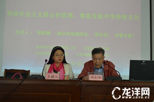 10月21日,由省社科院、省青年文化学会、省网络文学学会联合主办的“坚持社会主义核心价值观,尊重发展中国传统文化”的学术讲座在省社科院新楼七楼会议室举行。该学术讲座由省青年文化学会会长、省网络文学学会副会长兼秘书长田原主持,省社科院原副院长、研究员、省管专家、著名学者冯祖贻先生主讲。