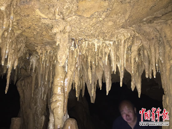 村支书安德礼在查看地下溶洞。中国青年报·中青在线记者 袁贻辰/摄