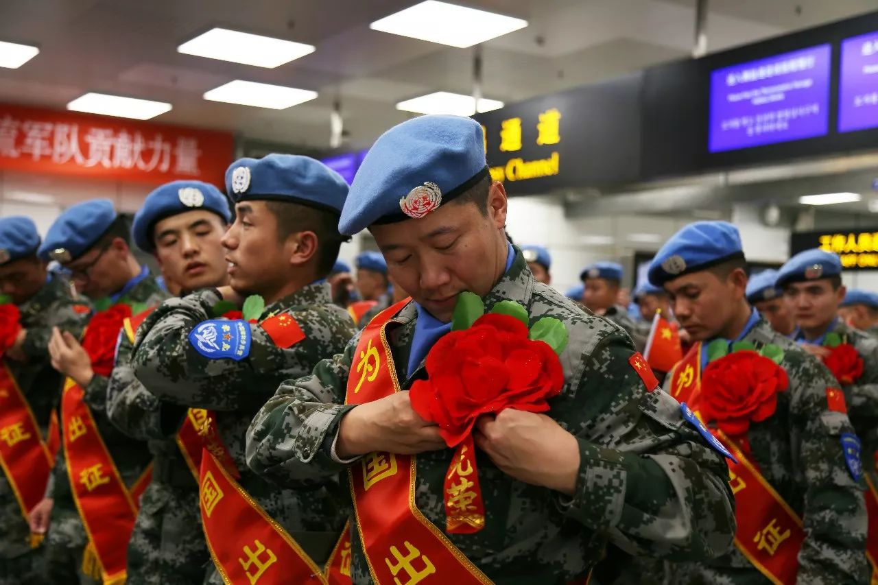 出发前,部队在机场举行了出征仪式。180名官兵整齐列队,头戴蓝色贝雷帽、佩戴“飞虎”臂章,目光坚定、神态刚毅。出征队员们表示,要坚决完成好此次国际维和任务,为祖国和人民增光,为“飞虎”部队再添光彩。