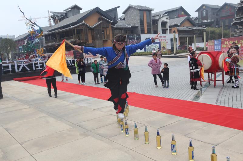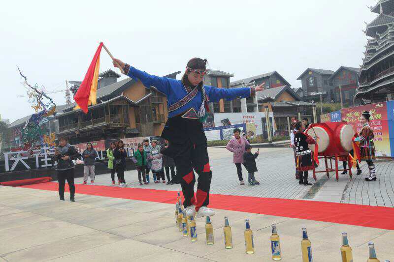多彩贵州城刀王非遗文化传承展示中心惊现绝技: 苗族姑娘唐羽荟挑战“弯道酒瓶” 日前(11月30日),贵州吉靖羽文化经纪演出有限公司在多彩贵州城举行了“云上贵州-刀王食府非遗文化传承展示中心开业典礼”,来自该公司贵州吉靖羽大刀艺术团的十多名演员和多彩贵州城演艺中心的演员一起表演了一场别开生面的飞羽四面鼓,大刀艺术团曾三次荣获世界吉尼斯记录的唐慧(艺名唐羽荟)现场表演的“走弯道无固定啤酒瓶”吸引不少市民围观。 笔者看到,96 个没有开封的啤酒瓶从三层楼梯下一路拐弯摆下来,啤酒瓶的间距不到 20 公分,吸引观众眼球。 身着苗族服饰在唐羽荟气定神闲,轻盈走上酒瓶,真是步步惊心,从楼梯下走上平台的第一个弯道之后,虽然有次意外地从酒瓶上掉了下来,但仍然获得观众的阵阵掌声和鼓励。10 分钟内唐羽荟走完所有酒瓶。 不少围观者也跃跃欲试来走酒瓶,结果第一个酒瓶还没上去就踩翻了。工作人员为避免酒瓶破碎伤人提醒未经训练的市民不要随意模仿。 唐羽荟告诉记者,这次挑战虽然失败,但她依然是 " 走酒瓶 " 最长距离的吉尼斯世界纪录保持者。2016 年中央电视台吉尼斯之夜,来自美国的顶尖杂技演员莎莉向中国人发起挑战 " 走酒瓶 ",此前从来没有走过酒瓶的她接过挑战书,用不到两周的时间急训,并最终战胜了这位来自美国的挑战者。" 走酒瓶最大的难点就是不固定,这样平衡更难掌握,很容易就会把酒瓶踩翻。" 唐羽荟说,每次走酒瓶的时候,她都感觉自己的心不跳了,平静得像一片云飘在酒瓶上。 据悉,今年 20 岁的唐羽荟是来自中国绝技文化之乡贵州省松桃县苗族绝技传承人、"世界大刀王 " 吉靖羽的徒弟,她从 10 岁就开始接受平衡训练,能赤脚走在滚烫的灯泡和锋利的枪尖上,目前是三项吉尼斯世界纪录的保持者。 在国内外绝技文化界享有盛誉的贵州吉靖羽大刀艺术团是贵州省直属民间绝技绝艺演出团体,曾荣获26项国际、国家、省市行业大奖,尤其是该团团长、中国民间文化杰出传承人吉靖羽(本名龙光清)独创的“赤脚斜走大刀”颠峰绝技表演享誉海内外,他本人被誉为“刀锋上的奇人”、“世界大刀王”。 艺术团成立以来免费招收了100多名来自全国各地,特别是贵州偏远山区的贫困留守少年儿童,为他们提供读书、吃、穿、住、医等各项费用,并以专业的形式传授给孩子们武功绝技。以文化传承积极参与精准扶贫。日前,吉靖羽作为著名民间表演艺术家和国家级民间非遗文化传承人,以文惠民化贫,荣获“贵州脱贫攻坚群英谱”文化骑兵,为进一步贯彻十九大精神,传承民族民间文化,参与贵州扶贫攻坚工程,特在多彩贵州城成立“云上贵州——刀王食府非遗文化传承展示中心”。 |
