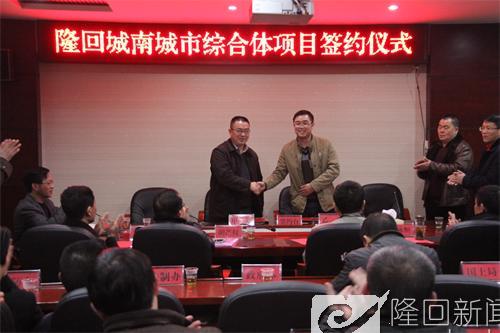 1月20日,隆回县城市建设投资开发有限公司与隆回龙登房地产开发有限公司在县城建委会议室正式签约,投资80050万元共同建设隆回城南城市综合体项目。县领导陈立君、刘科棉、胡芒权等及四川民和房地产开发有限公司董事长李国民、隆回龙登房地产开发有限公司总经理李敏出席签约仪式,县规划、国土、建设、房产等相关部门负责人共同见证签约。 隆回县城城南城市综合体、城市客厅片区项目是提升隆回城市品位的重点规划项目,该项目东起大桥路,从桥头至紫阳路交叉口,往西延伸至青丰路,再往南至环城南路,西至辰河南路,北以资江岸线为界,总用地约1050亩;规划总建筑面积约113万平米,其中住宅部分约75万平米,商业部分约25万平米,安置面积约13万平米。 该项目建成后,将集高档住宅群、精品商业群、幼儿园、会所、银行、超市等配套设施为一体,成为隆回高档的“城市客厅”。