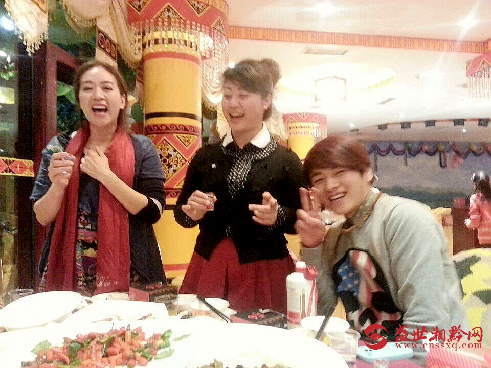 酒过三巡微醺时,巧遇贵州民大西南夜郎文化研究院的彝族美女教授珠尼阿依,用彝语祝福,把美酒当歌,分别用彝族、苗族歌曲给到场的每一位致以新年的问候、送上美酒和歌声。酒歌才气四溢,加上热情,现场再起热潮,就连电视剧《北京青年》大结局插曲《我不配做你的男朋友》原创歌手张远喆也甚为叹服,现场嘉宾均成为其粉丝,杨远洲和东郎张超还分别现场用苗族和侗族歌曲交流,不亦乐乎。