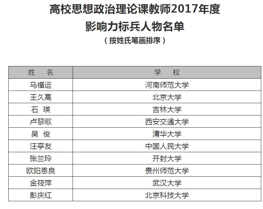 (盛世湘网讯 )8月27日,全国高校思想政治理论课教师2017年度影响力人物推选结果正式公布,贵州师范大学马克思主义学院院长欧阳恩良教授荣获“高校思想政治理论课教师2017年度影响力标兵人物”称号。 据悉,全国高校思想政治理论课教师2017年度影响力人物推选由教育部社会科学司指导,教育部高校思想政治理论课教学指导委员会和《思想理论教育导刊》编辑部、《马克思主义理论学科研究》编辑部等主办,每年评选出10位标兵人物。经过资格审查、专家书面评审、会议综合推选、结果公示等程序环节,全国高校思想政治理论课教师2017年度影响力人物推选结果进行正式公布,贵州师范大学马克思主义学院院长欧阳恩良教授等10人荣获“高校思想政治理论课教师2017年度影响力标兵人物”称号,30人荣获“高校思想政治理论课教师2017年度影响力人物”称号,59人荣获“高校思想政治理论课教师2017年度影响力提名人物”称号。组委会希望入选教师以习近平新时代中国特色社会主义思想和党的十九大精神为指导,增强“四个意识”,坚定“四个自信”,恪守立德树人的崇高职责,进一步提高教学科研水平,为继续打好提高高校思想政治理论课质量和水平的攻坚战做出更大的成绩。