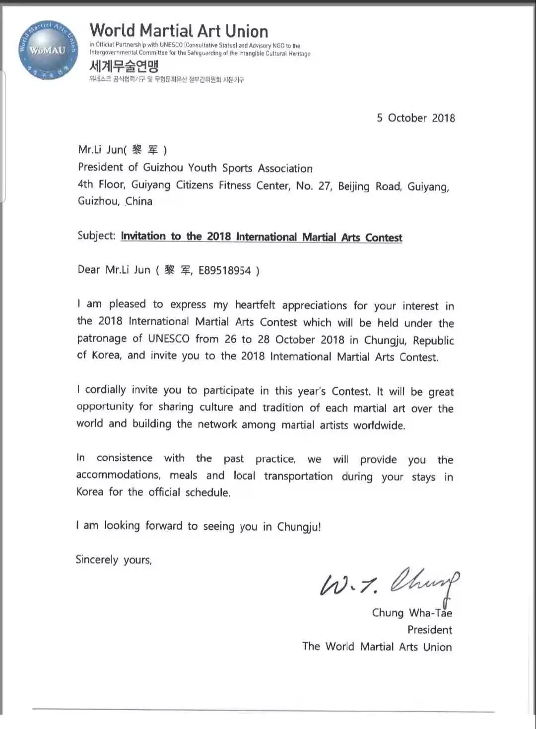 (盛世湘黔网讯 湘黔君)日前,由联合国教科文组织支持、世界武术联盟举办的“2018国际武术大会”于10月26日~28日在韩国忠州举行。 (黎军受邀在世界武术联盟本部与世界武术联盟主席交流后留影。)