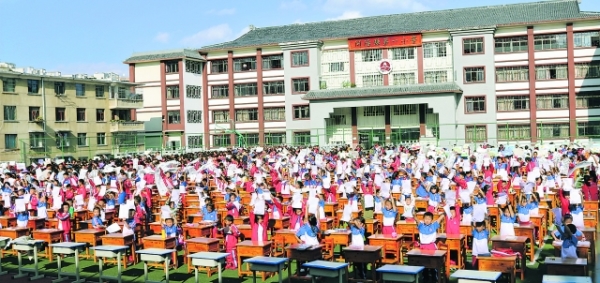 贵阳网讯 10月9日,开阳一小组织全校3000余名师生开展庆祝中华人民共和国成立70周年暨“王阳明诗文名篇”千人现场书画大赛。 当天,555名师生代表在学校运动场进行书画创作,其余2479名师生在各班教室同步进行创作。在两个小时的比赛过程中,参赛师生以王阳明诗文名篇为题材,创作出风格各异、主题鲜明的书画作品。比赛结束后,全校师生高举自己的作品进行展示,并接受了爱国主义再教育和阳明文化再宣讲,以进一步传承阳明文化,提升全校师生的艺术修养。 据介绍,近年来,开阳一小创新发展,形成“教师每日一练、学生人人参与”的全校性书画创作氛围和格局,持之以恒地打造书画艺术特色学校。 |