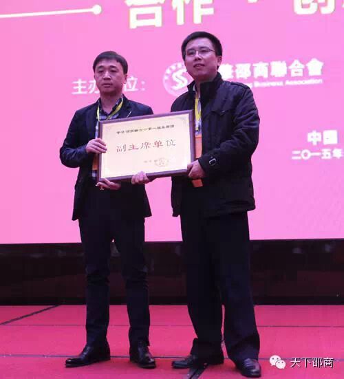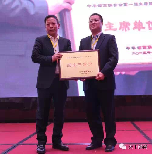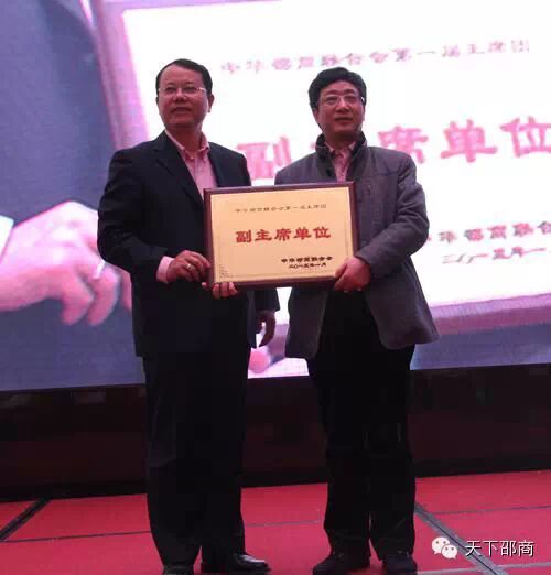 联合会主席张辉向新任执行主席邓天骥授牌: 各副主席单位授牌仪式: 中华邵商联合会常务主席李惠海为律师顾问团授牌: 中华邵商联合会终身名誉主席曾小山为新成立的文化艺术发展委员会授牌: 联合会核心组织的确立,预示着在新的一年里联合会将精诚团结,天下为公,为联合会的发展做应有的贡献。 本次大会上,围绕着“团结、发展、共赢”的奋斗目标,北京邵阳企业商会、长沙市邵阳商会、兰州市邵阳商会、广东省湖南邵阳商会、株洲市邵阳商会、深圳市邵阳商会等六个商会分别获得了“中华邵商联合会杰出贡献奖” 大会最后,中华邵商联合会终身名誉主席曾小山在致辞时表示:他希望中华邵商联合会在以张辉主席、邓天骥执行主席为核心的团队务实开展工作,2015年要坚定不移地通过四个产业委员会把大家凝聚在一起,争取2016年的年会有好的成绩向大家汇报。 新的一年新的希望,中华邵商联合会将迈出稳健的步伐阔步向前! |